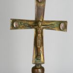 Ostensorio raggiato, XVIII secolo Il manufatto, di proprietà della parrocchia di Laino, è tra le più preziose oreficerie presenti in area lariana. Presenta una base mistilinea ornata di motivi vegetali e floreali, conchiglie e teste alate e un fusto con nodo a getto recante teste di angioletto su cui si innesta il ricettacolo circolare. Quest’ultimo […]